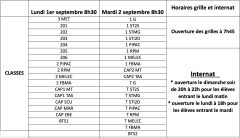 Dans le tableau suivant, vous retrouverez les dates et heures de rentrée par classe.